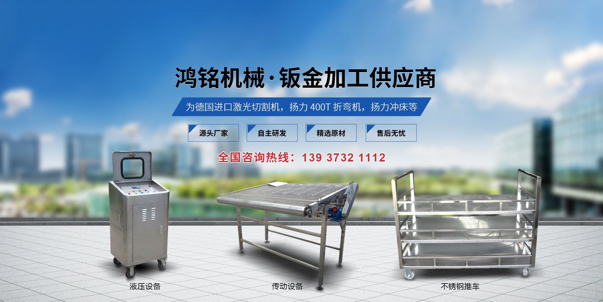 新鄉(xiāng)市鴻銘機械有限公司成立于2009年,占地面積8000平方米,位于新鄉(xiāng)市衛(wèi)濱區(qū)南環(huán)路,地理位置優(yōu)越,交通便利。 本公司設(shè)備為德國進口激光切割機,揚力400T折彎機,揚力沖床等設(shè)備。主要從事鈑金加工、及生產(chǎn)各類金屬鈑金零部件及生產(chǎn)各類沖壓零件。  公司長期與國內(nèi)外大型企業(yè)合作深受新老客戶的贊賞,同時公司對外承接各類鈑金加工業(yè)務(標準鈑金件與非標鈑金件),先后為多家知名企業(yè)配套加工鈑金,公司也可根據(jù)客戶的需要代為設(shè)計,尤其對精度、外觀要求高的產(chǎn)品有獨到的生產(chǎn)經(jīng)驗。 我們本著"科學管理、全員參與、持續(xù)改進、滿足客戶"的質(zhì)量方針來生產(chǎn)我們的每一件產(chǎn)品。為了在市場競爭中立于不敗之地,公司以質(zhì)量求生存,以設(shè)備保精度。歡迎新老客戶到本公司實地考察。  本企業(yè)建立以來,以"質(zhì)量保證,信譽保證,交貨及時,價格合理"為宗旨,贏得了客戶的一致好評。面對市場經(jīng)濟的挑戰(zhàn),公司將以產(chǎn)品和服務參與市場競爭,為廣大客戶提供鈑金加工平臺。